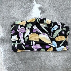 This stylish strapless top features a vibrant floral pattern, perfect for any occasion. The black base color enhances the colorful design, making it a standout piece in your wardrobe. Size XL, by Lulus. Side zipper closure. Great shape! :)