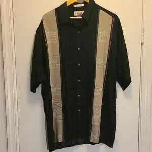 Campia Men’s XL Black Tan Panel Button Up Shirt Resort Style
