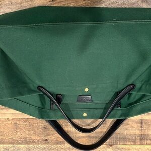 The Row’s understated sophistication, this Idaho Medium Tote is crafted in deep green canvas with contrasting smooth black leather handles. Lightweight yet structured, it’s the perfect everyday carry-all with the quiet luxury aesthetic The Row is known for. Features gold-tone snap closure, roomy interior, and minimalist branding. Excellent pre-loved condition. No stains or tears.