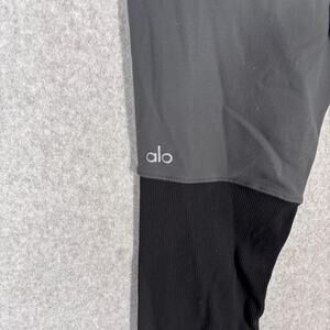 Alo Yoga Goddess Leggings Medium Gray Black High Rise Ribbed Ruched Ballet Dance Womens Contrast Panel Activewear Performance Lounge Comfort Comfy Cozy