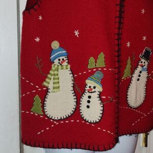 Coldwater Creek 100% wool winter snowmen holiday vest Sz L
