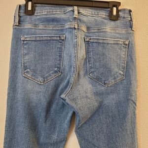 Frame Le Skinny de Jeanne Alverstone Jeans. London-inspired style combined with the quality of the L.A. denim industry informs a chic pair of flattering, go-to skinny jeans updated in a fresh wash—exclusive to Nordstrom—with subtle whiskering and hand-done distressing. They are in excellent preowned condition.