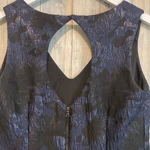 Nicole Miller Black & Navy Metallic Shift Dress with Black Fringe | Size 8