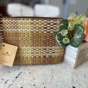 Patricia Nash Cassini Wristlet Ribbons & Raffia done in Khaki. Has zipper interior pocket, lined with Patricia's signature soft brown lining.