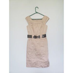 White House Black Market Womens Sz 0 Mini Dress Belted Tan Cap Sleeve Stretch