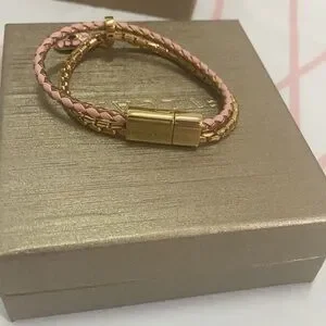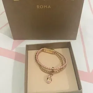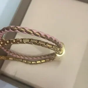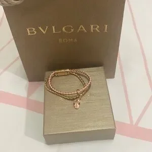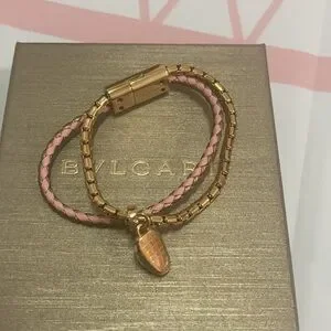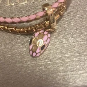 Bvlgari Snake Head Charm Metal Calfskin Bracelet Size 14.5cm