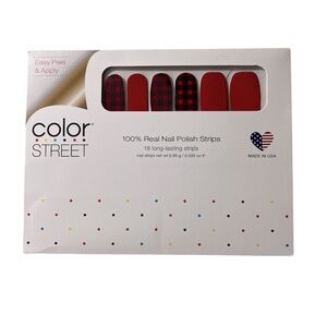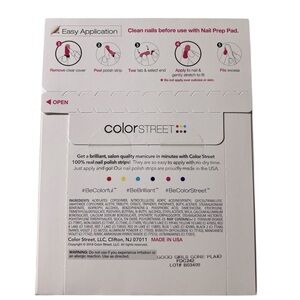 100% real nail polish strips from the Color Street brand. 16 long lasting, double-ended easy to peel and apply strips.