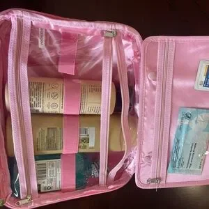 Great gift for birthdays, anniversary, Mother’s Day. The bag has five compartments, crafted with durable, transparent PVC material, smooth zippers, 360° robust metal hook and a convenient handle to carry your toiletries andmakeup. Stylish pink cosmetic bag perfect for organizing your beauty essentials. Ideal for travel or daily use. Measurement (12x9x5)