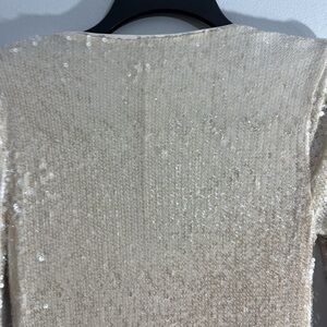 Wild Fable Sequin V-Neck Dress in Cream Size Small Pull Over Long Sleeves