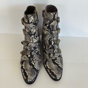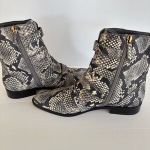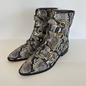 J. Crew Multi Buckle Snake Embossed Leather Moto Boots 9 EUC
