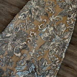 NWT Badgley Mischka Silver and Cream Formal Dress