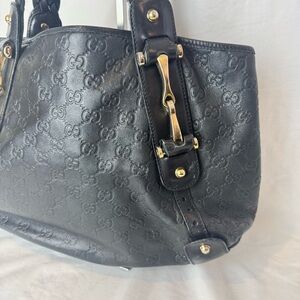 Y2K GUCCI Guccissima Pelham Shoulder Bag Black braided leather tote horsebit