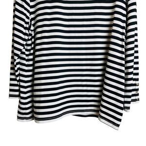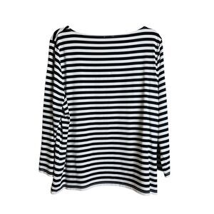 Talbots Shirt Womens XL Black White Stripe Long Sleeve Gold Button Nautical Top