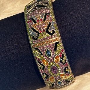 It's a signature piece by Heidi Daus, a designer renowned for elaborate, often vintage-inspired, costume jewelry adorned with Swarovski crystals.