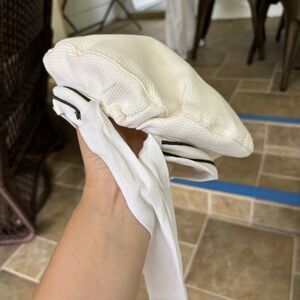 Please be aware that there is some yellowing and a couple of marks on the collar. Nothing has been spot treated.