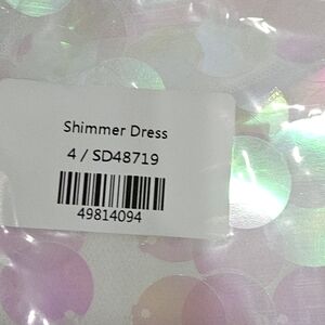 Brand new in bag sealed from company. Turn heads and sparkle with our Shimmer Dress. Featuring white large sequins, a square neckline, and half length puff sleeves, this knee length dress is perfect for any special occasion. The hidden back zipper and fully lined fabric add practicality to the glam. Get ready to shine!