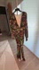 Elegant floral maxi dress with vibrant colors. Features long sleeves and a deep V-neckline.