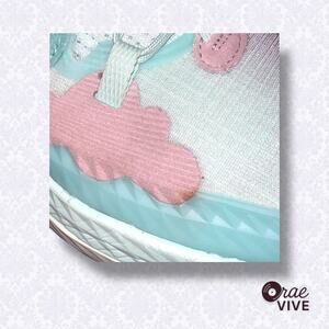 Condition: Pre-owned. Only noticeable flaw is slight discoloration on pink cloud (right shoe) as shown in last photo.