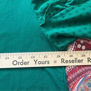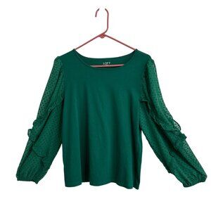 Loft Womens SZ L Green Sleeve Sheer Polka Dot Ruffle Sleeves Forest Fairycore