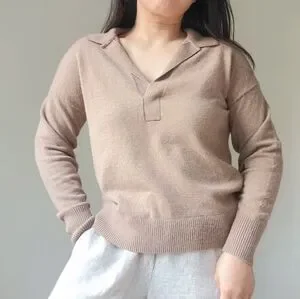 100% Cashmere Polo Sweater, Teak, M