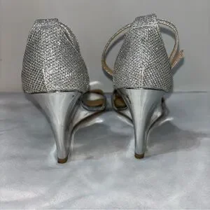 Tag: princess, shiny, wedding, formal, event, elegant, wedge, sparkle, open toe, ankle strap, silver, classy