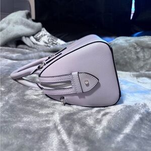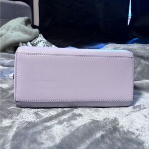 Perfect size for an everyday bag. Matching wallet included. Pale lavender lilac color. Excellent condition! Original crossbody strap is included.