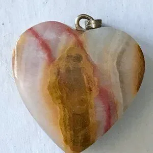 Vintage Agate Heart Pendant, Earthtones