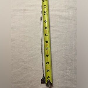 Western, bohemian style silver cow tag necklace with faux turquoise stone. Features adjustable chain length and a lobster clasp closure. Made with alloy metals.