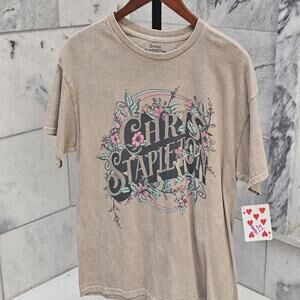 Tan Chris Stapleton tour tee with pink and green floral design #country #music size L preloved $22 plus shipping