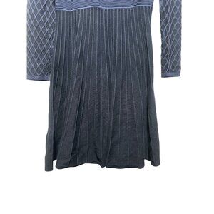 Sold Hugo Boss Wedressy Pleated Dress Size Medium Blue Silk Blend Long Sleeve