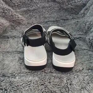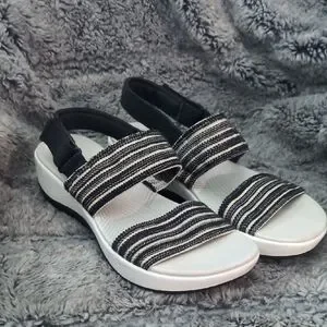 Step out in style with these chic black and white sandals. Perfect for any occasion, they offer both comfort and elegance.