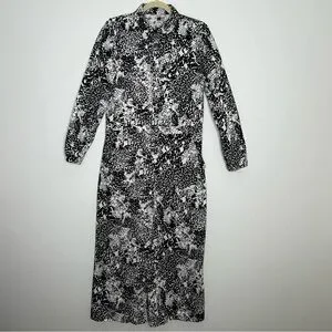 The Kit Black White Patterned Alex Jumpsuit Cropped Long Sleeve Size Medium Fall