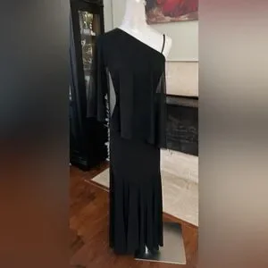 This elegant black one-shoulder practice dance dress is perfect for practice or performance, showcase. Its sleek design and flowing silhouette offer a sophisticated look. Float creates volume , but also hides little areas of imperfections.