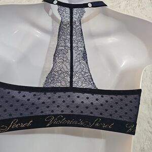Victoria's Secret Navy Racer Back Bra With Gold Letters Size 36DDD
