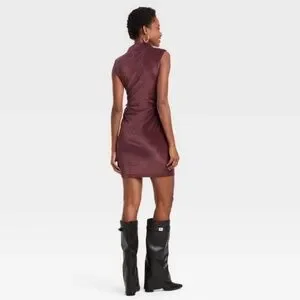 A New Day Target Velvet Ruched Mini Dress Mock Neck Burgundy Bodycon New Tags XS