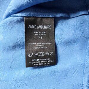 NWOT - The Zadig & Voltaire Mini Blue Long Sleeve Dress is a stylish and versatile piece perfect for both party occasions and casual wear. This short dress features a round neckline with ruffle accents and puff sleeves, adding a touch of femininity.