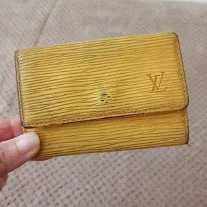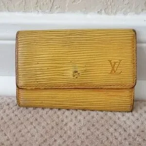 NOTE- pre-loved with discoloration and some corner wear. All 6 rings are present and snap closure is tight. A lot of life left. Can carry immediately.