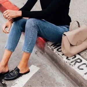 Black with gold-tone horsebit detail