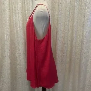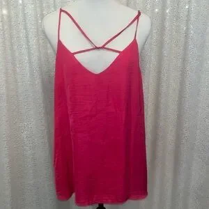Hot pink tank with criss-cross straps. Adjustable spaghetti straps, fully lined, poly Excellent pre owned