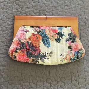 Sondra Roberts Squared Floral Print Clutch with Wooden Frame Magnetic Closure