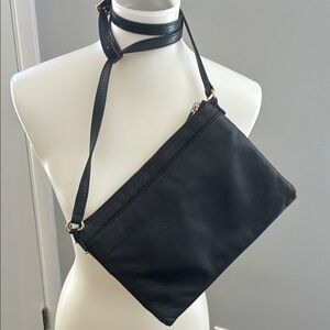 Chic black leather crossbody by Michael Kors. Features gold-tone hardware and adjustable strap. Good for working projects