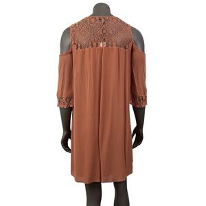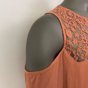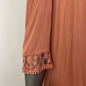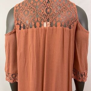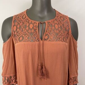 Heartloom Dress Tunic M Terracotta Rust Cold Shoulder Lace Boho Hippie Artsy