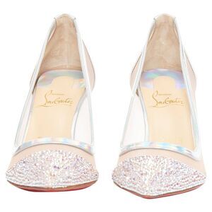 CHRISTIAN LOUBOUTIN Galavati Strass silver iridescent mesh crystal heels EU36.5