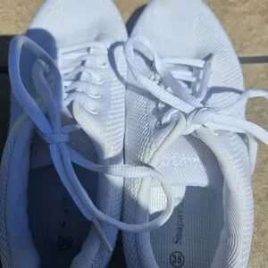 Stylish white athletic sneakers with lace-up design. Perfect for casual wear or workouts.Used for girls indoor cheer season like new never worn outside.Smoke free pet free home