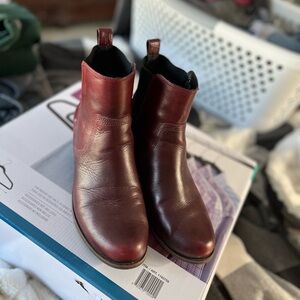 UGG Maroon Leather pull on ankle booties with alligator accent lined w/sheepskin