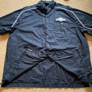 The Harley Davidson Mechanic Shirt is a sturdy black cotton button-up in size XXL, perfect for men who need a workwear option with a touch of motorcycle flair. The short sleeves, collared neckline, and spread collar style add a classic touch to this shirt, while the pockets provide functionality. Ideal for casual outings, travel, or work, this regular fit shirt is machine washable for easy care. Made by the iconic brand Harley-Davidson, this shirt is a timeless piece for any wardrobe.