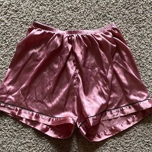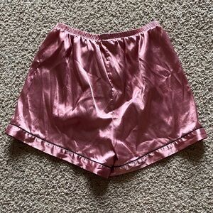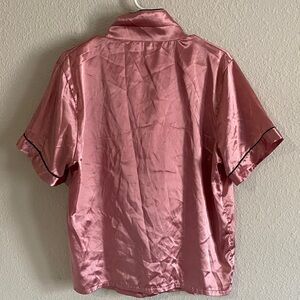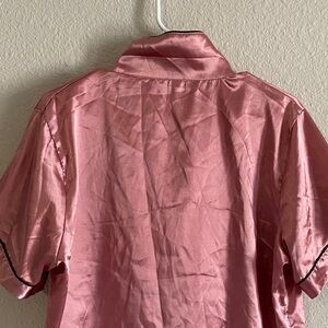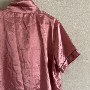 Chic satin pajama set in a rose color. Outlined in black. Features a relaxed top and comfy shorts. In great condition.