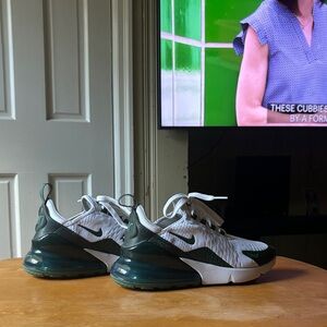 Nike Air Max 270 with a stylish white and dark green colorway. Ideal for everyday wear.