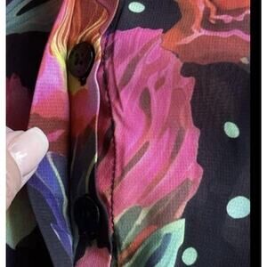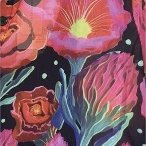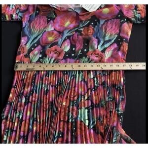 Farm Rio Dress Womens Small Black Pink Floral Pleated Maxi Button Anthropologie
