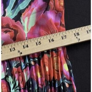 Farm Rio for Anthropologie Dress Womens Small Black Pink Floral Pleated Maxi